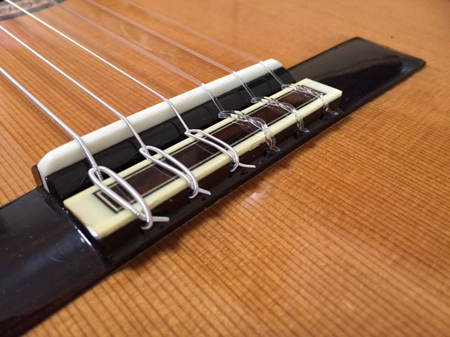 念のため、縛り目がブリッジの側面にきていることを確認してみてください。